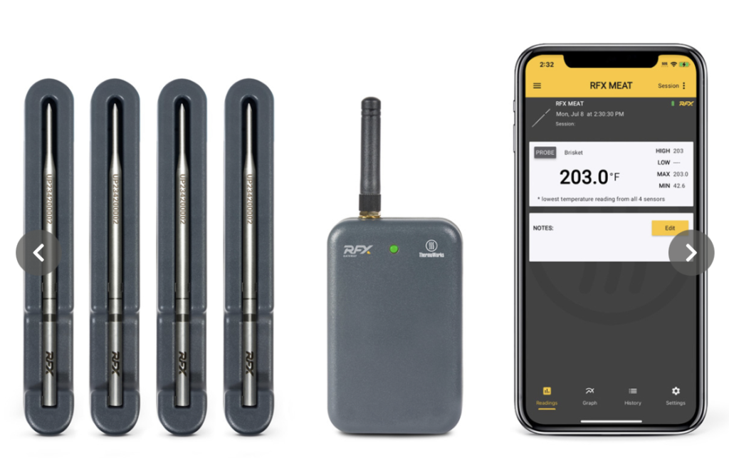 I’ve tried most of the top units when BBQing and smoking on my charcoal and pellet grills. Issues with them include loss of wireless signal through the grill, how far they will send their signal, the ability to withstand sudden high temepratures, and the software used to monitor the temperature. I’ve found the best of the bunch, based on reliability, value, and performance to be the ThermoWorks RFX model. It uses a more robust communications band and is much more affordable when buying multiple probes, about $50-$60 each. ThermoWorks also often runs frequent sales.